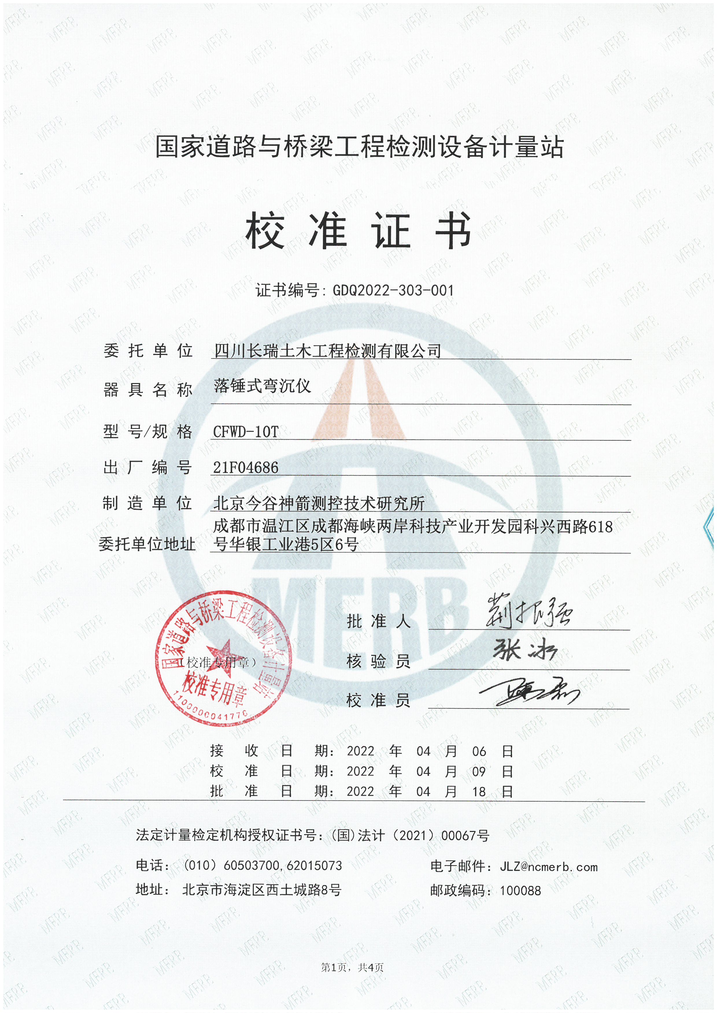 我司車載式落錘彎沉儀參加集中校準(zhǔn)并取得校準(zhǔn)證書